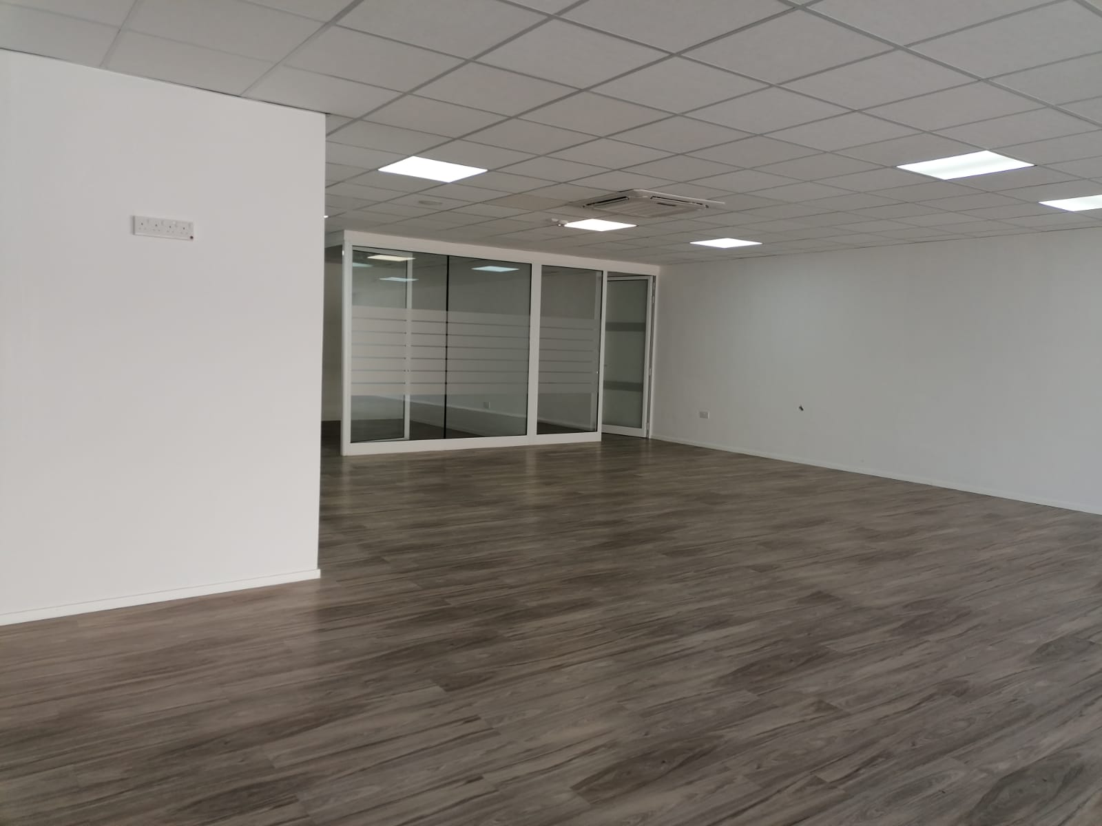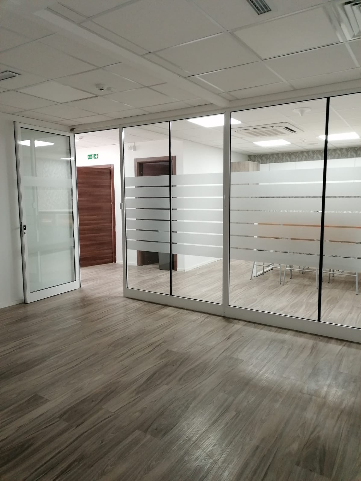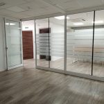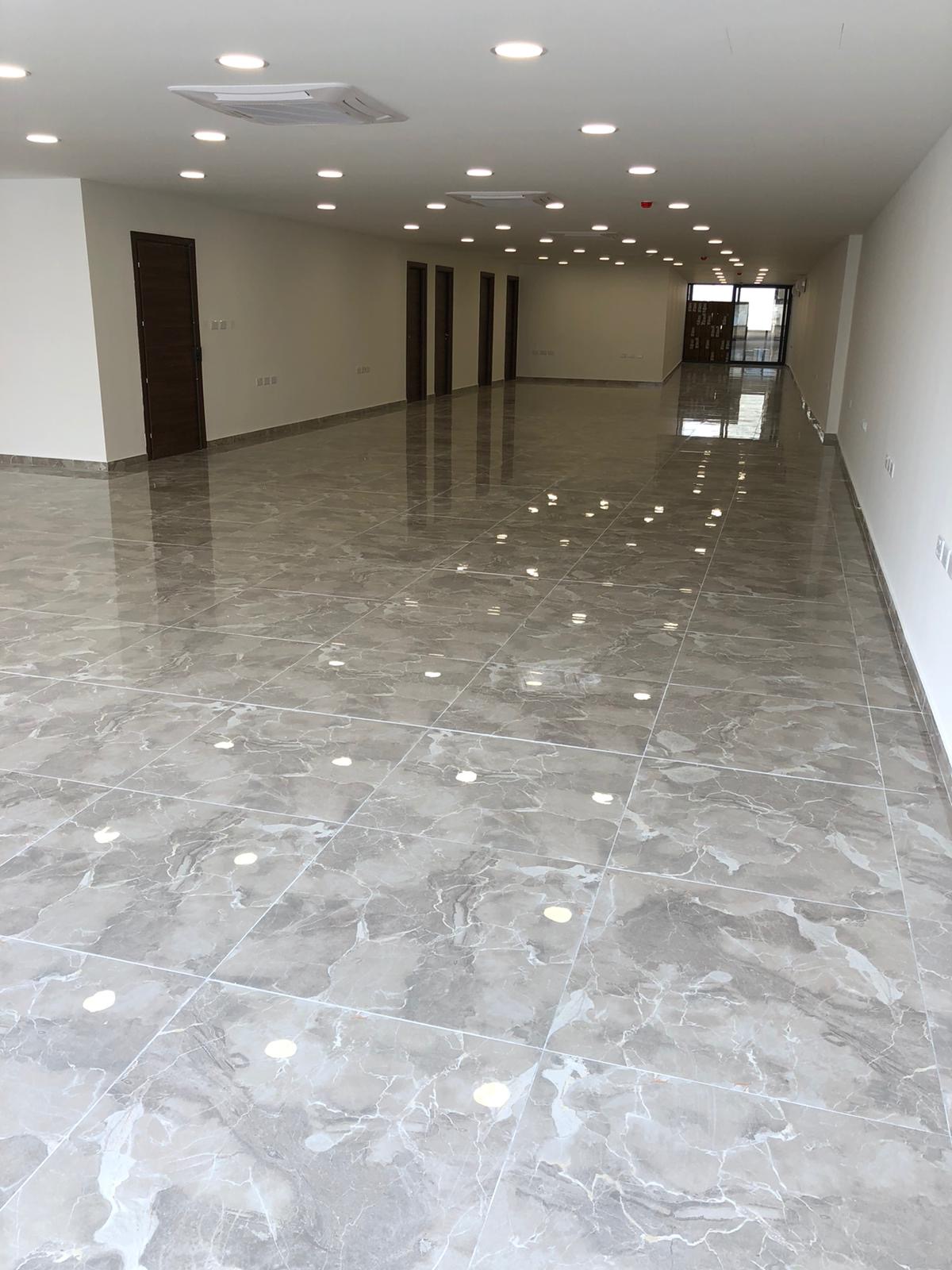 Each floor is currently divided into multiple rooms using glass and gypsum partitions, which can easily be removed to convert to an open plan, comes with four bathrooms, fully serviced kitchen, and fully air conditioned throughout.